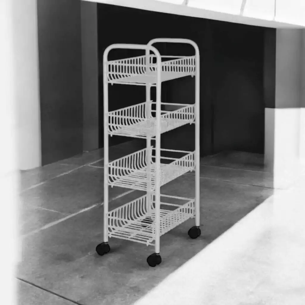 Cuenta con 4 canastos espaciosos y resistentes, ideales para almacenar tus productos frescos con orden y estilo. Gracias a sus ruedas suaves, podés desplazarlo fácilmente por toda la cocina sin esfuerzo.