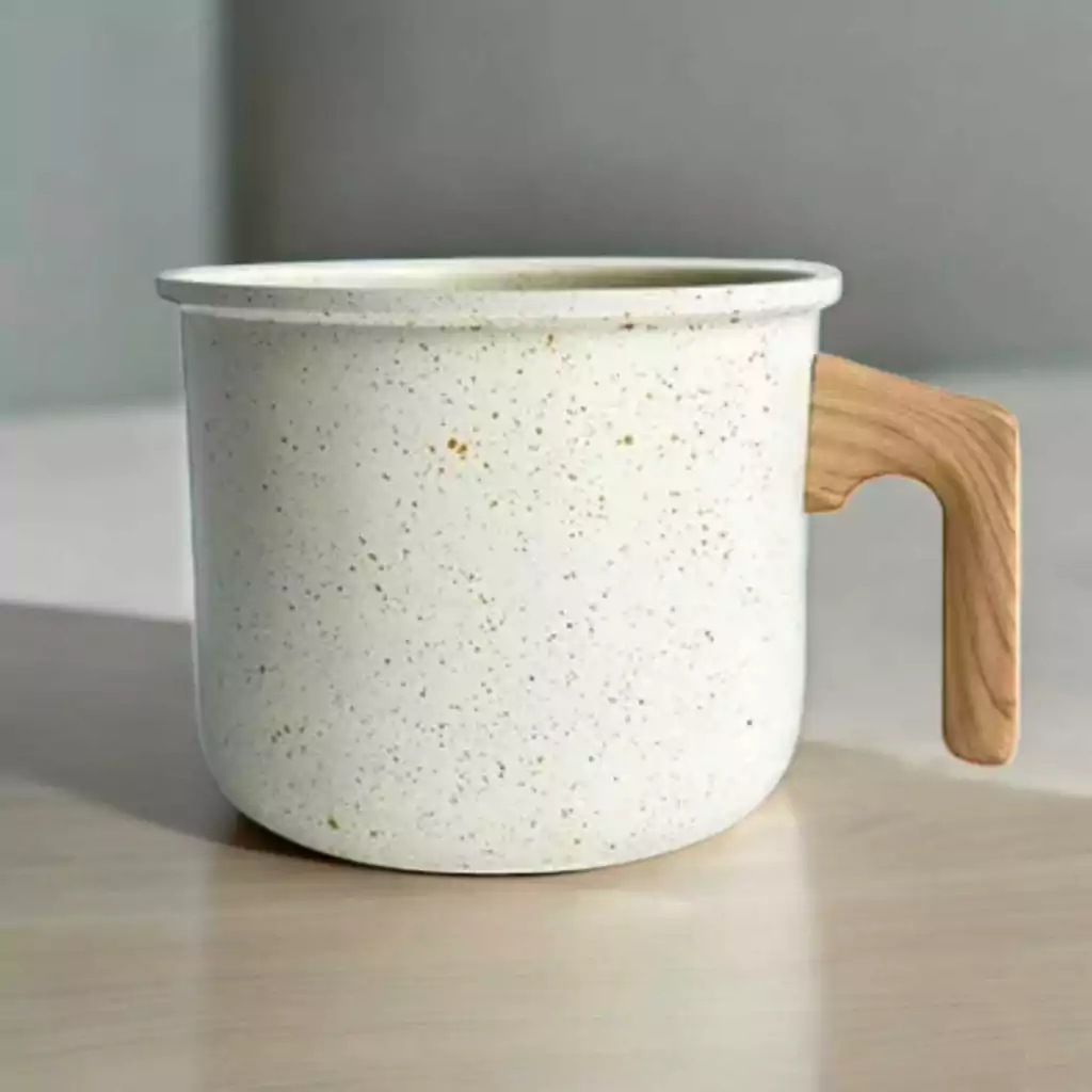 Con su revestimiento reforzado, este jarro no solo es bonito, sino que también dura más. Su color crema le da un toque elegante y moderno a cualquier cocina. Es perfecto para hervir agua, preparar caldos o simplemente para servir tus bebidas favoritas.