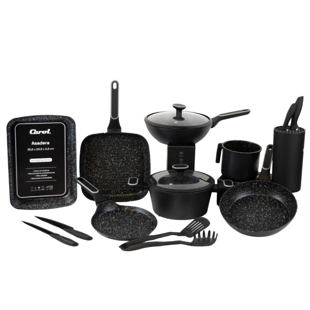 Descubrí el Set Carol Negro 10pz Antiadherente, el aliado perfecto para transformar tu cocina con estilo y practicidad. Este completo set incluye todo lo que necesitás para cocinar con comodidad y resultados profesionales.
