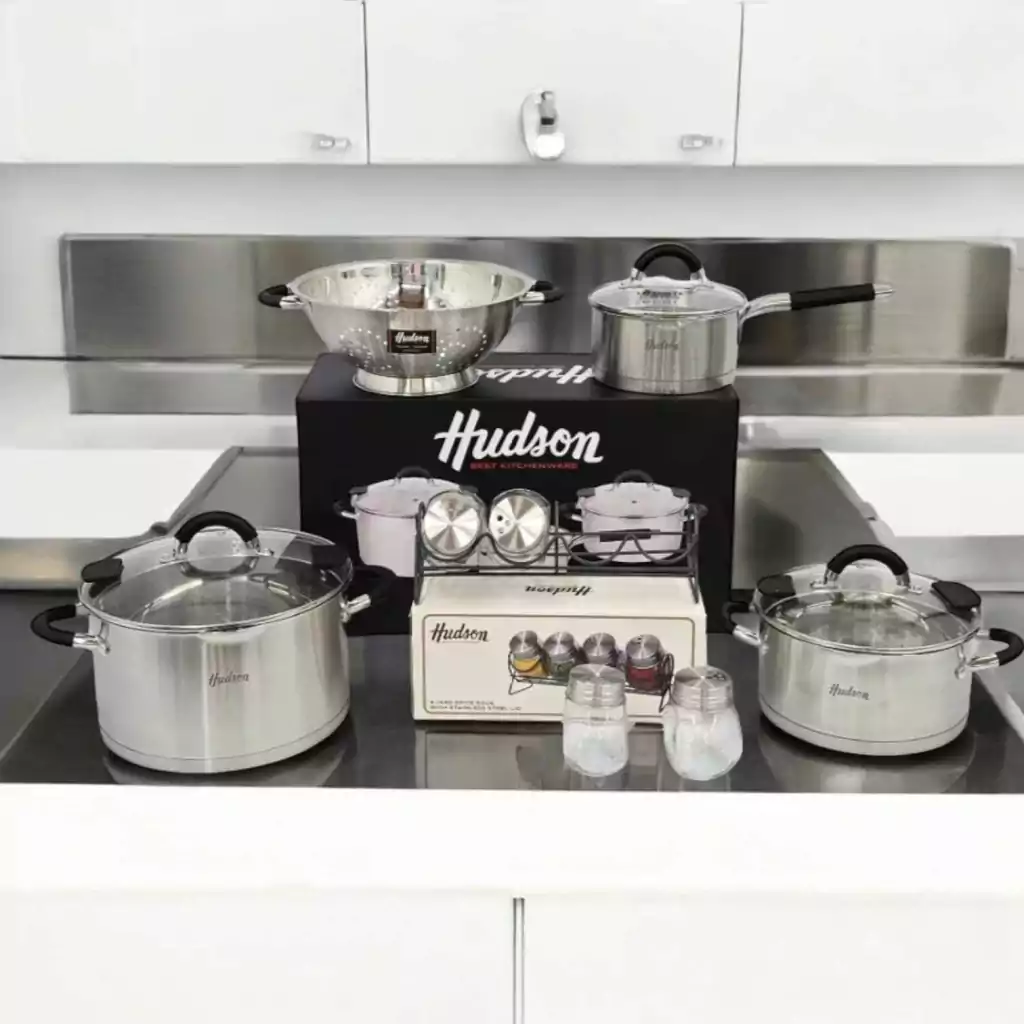 Set Hudson Acero Triple Fondo Inoxidable – ¡La combinación perfecta para tu cocina! Este set incluye una cacerola de 24cm, una olla con mango de 16cm y una cacerola de 20cm, todas fabricadas con acero inoxidable de triple fondo para una distribución uniforme del calor. Disfrutá de una cocción más eficiente y deliciosa en cada platillo.