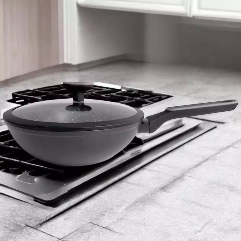Este wok es la combinación perfecta de estilo y funcionalidad. Su revestimiento de granito reforzado no solo asegura que tus comidas no se peguen, sino que también brinda una cocción uniforme. Con una tapa de vidrio que te permite monitorear tus platos sin perder calor, ¡cocinar nunca fue tan fácil!